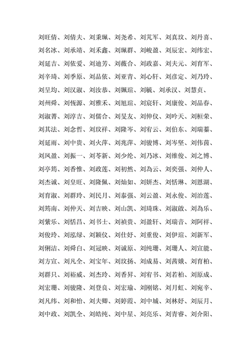 在选择以刘为姓的名字时,可以考虑以刘为名的第一个字,如“刘婉怡”、“刘心如”等,既能突出姓氏的重要性,又能使名字听起来更加和谐美妙。